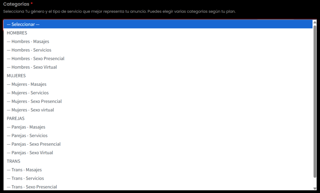 Categoría(s): selecciona una o varias (según plan).