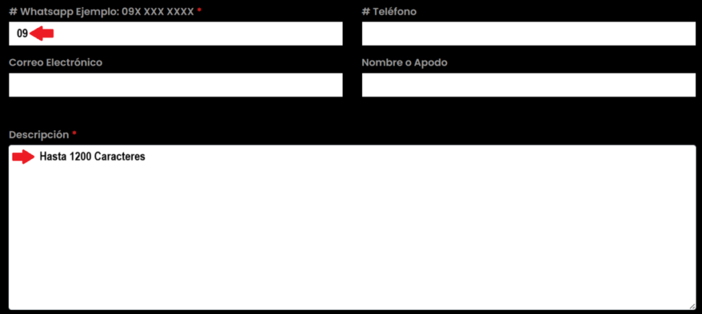 Contacto (obligatorio): WhatsApp, teléfono fijo (si tienes), email y nombre de contacto