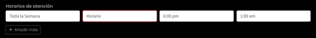 Horarios: define días y horas; el sistema mostrará si estás Disponible/No disponible.