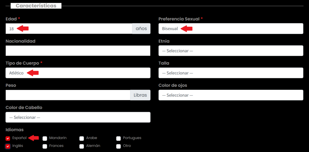 Características personales: completa para mejorar la búsqueda (algunas son obligatorias).