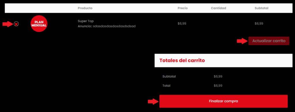 Actualiza si necesitas cambiar algo o aplica cupón de descuento (si tienes).