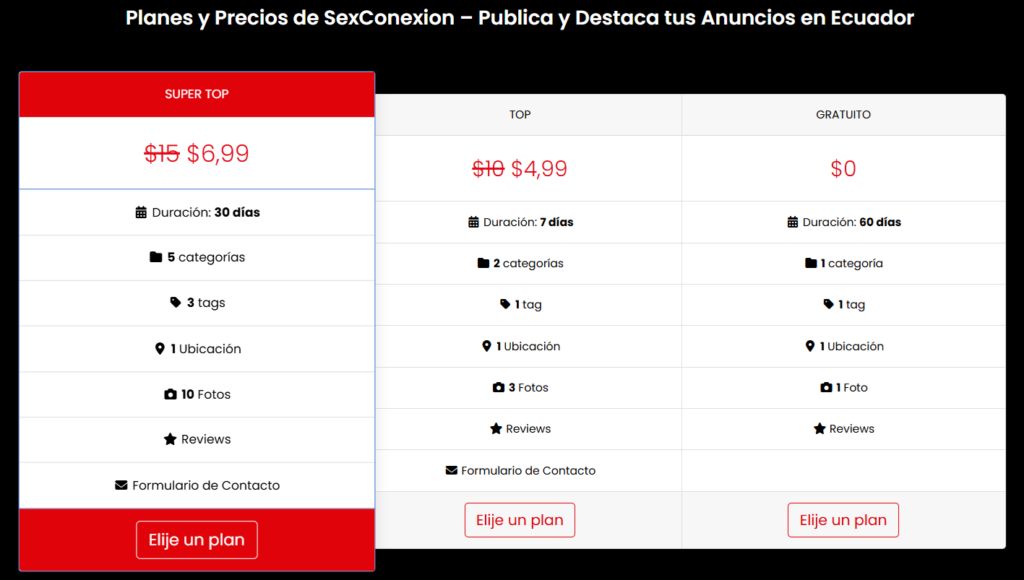 - Recuerda enviar un email si el pago no es por tarjeta de crédito a info@sexconexion.com adjuntando tu print del pago para que tu anuncio aparezca en la Web.